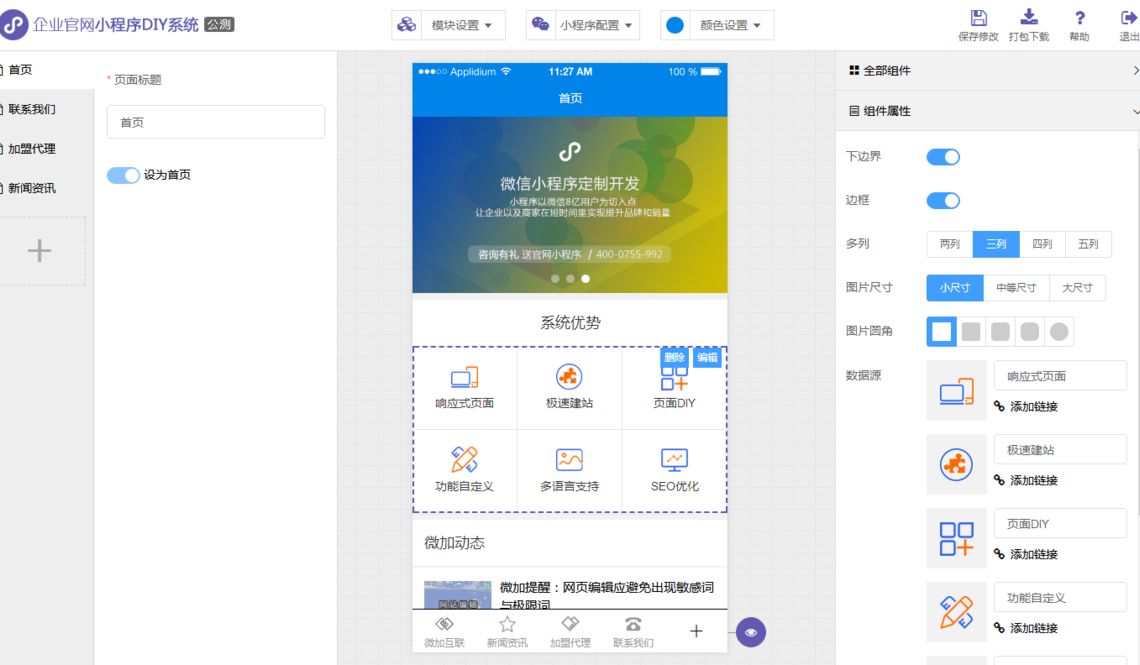 微加建站系統(tǒng)持續(xù)更新更多最前沿的功能模塊和最前衛(wèi)的效果插件